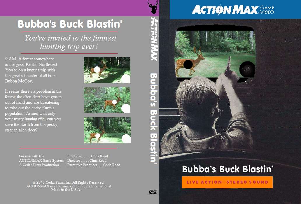 Well, you've reached this page. good for you. It's the official website for the ActionMax homebrew game called "Bubba's Buck Blastin'". Scheduled for release fall of 2015, this DVD will be the first ActionMax game in 27 years. Armed with the knowledge to make an ActionMax game, I figured why not put it to use and actually do it? So I did.