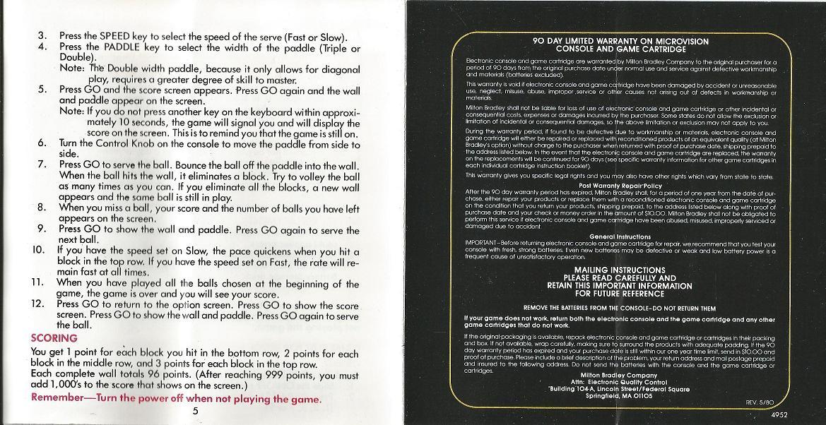 Released in 1979, Block Buster is the game that came packaged with the Microvision, so this is a more common game than the rest of them. The game is similar to the game Breakout in which you guide a paddle from the left and right with the knob to make a ball break blocks.