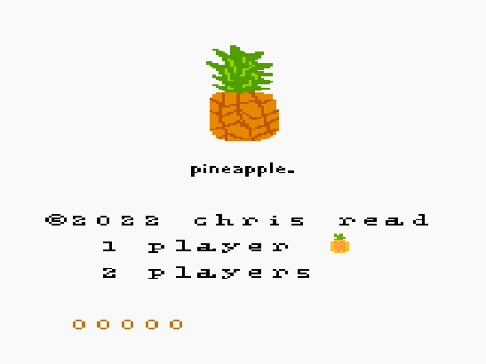 it's a new game for the atari 7800. you are a pineapple. dodge the bananas coming at you. be sure to grab the papayas. the faster you get them, the more points they're worth! don't let them disappear! and you thought being a pineapple was easy? think again!