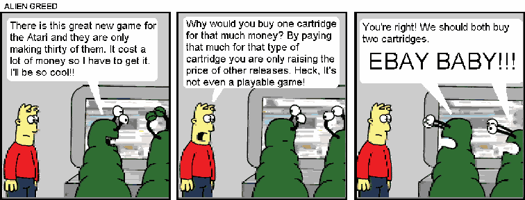 of ALIEN GREED. Actually you got here a little too fast. I guess that braking thing wasn't such a waste of time after all. Well, You are here in one piece but you can't say the same about your ship. Pieces is more like it. Time to go round up all of those shiny new cartridges before your rivals get here.