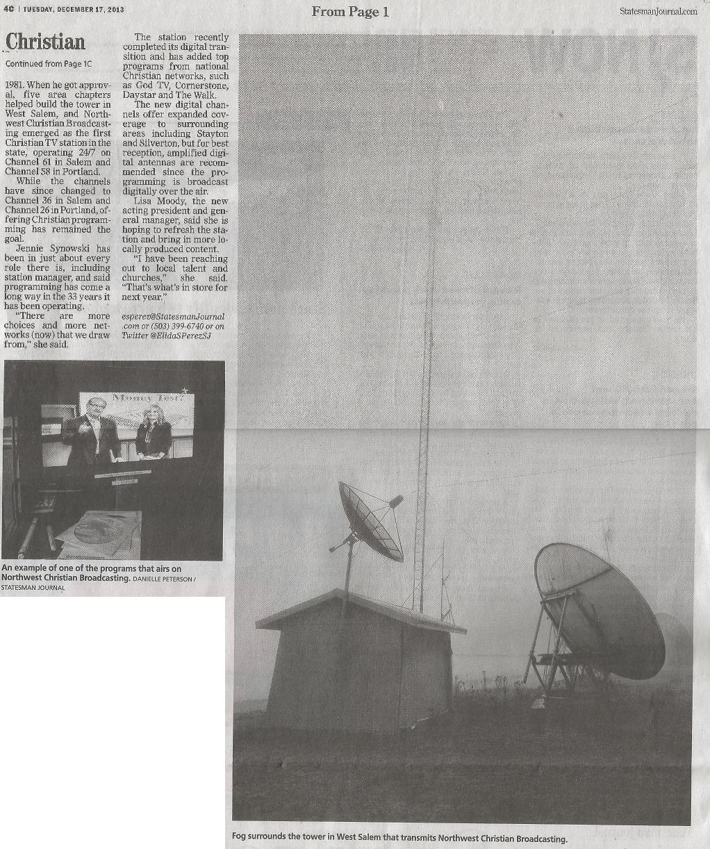 K21GX (formerly K61CC) One of the longest-lasting independent TV stations in the Salem area, K21GX offers Christian programs. While it used to have a cable channel on the cable station in the early 80's (Viacom Cablevision), you must now have an antenna to get it. Owned by Northwest Christian Broadcasting. Now on channel 36.